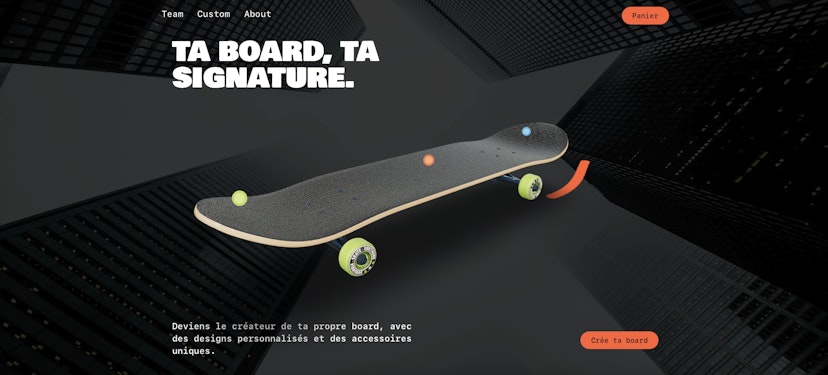 Personnalisez votre board avec cet outil interactif en 3D Three.js et visualisez votre design en temps réel.